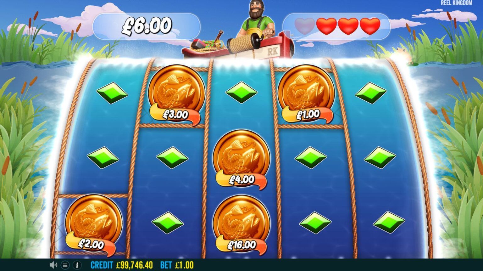 Los símbolos están inspirados en el mundo de la pesca. Los de menor valor son las cartas clásicas (10, J, Q, K y A), mientras que los de mayor valor representan peces, cañas de pescar, cebos y cajas de aparejos. El símbolo del pez dorado es clave porque puede otorgar premios acumulados. El pescador funciona como comodín y símbolo especial para activar las rondas de bonificación.